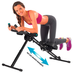 Hat man den Fitmaxx 5 aufgestellt, kann sofort loslegt werden. Dazu umfasst man die Handgriffe mit beiden Händen und kniet sich mit beiden Beinen auf die Knieauflage. Dabei sollte man auf einen sicheren Halt achten.